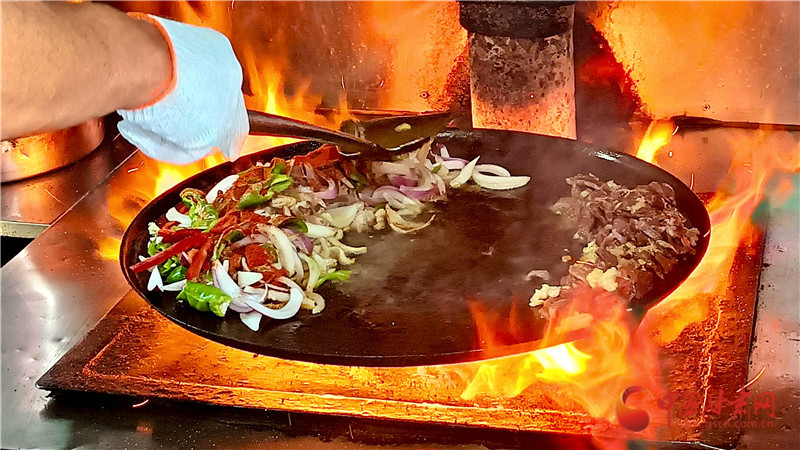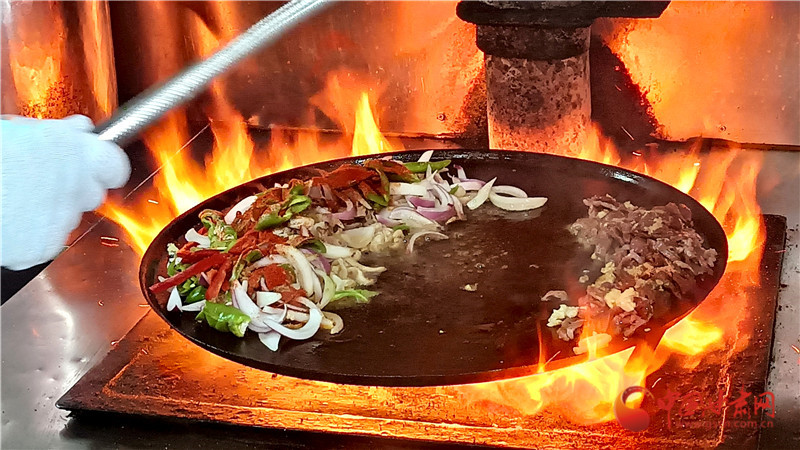 后來這種烹飪方式漸漸被當?shù)匕傩諏W(xué)會并加以改良,以牛、羊雜為主要食材,放在鐵鏊子上炒制,山丹炒撥拉由此而來。