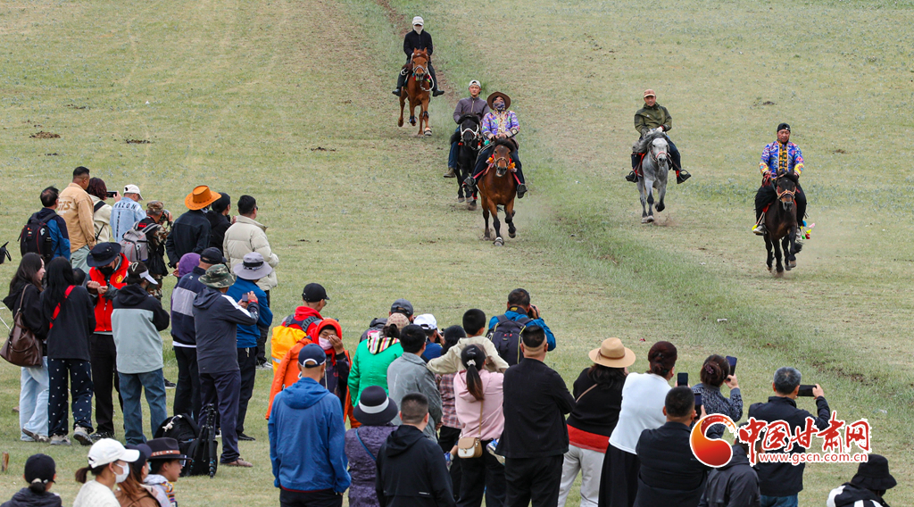 當(dāng)日,肅南裕固族自治縣“相約康樂(lè)草原 體驗(yàn)民族風(fēng)情”傳統(tǒng)文化展演活動(dòng)拉開(kāi)帷幕,來(lái)自肅南縣3個(gè)鄉(xiāng)鎮(zhèn)22個(gè)村的160多名騎手,自發(fā)匯聚于此,展開(kāi)大馬賽、小馬賽、圓口賽、對(duì)牙賽等精彩賽事,將草原的速度與激情演繹得淋漓盡致,吸引了上海、廣東、安徽、福建等地的萬(wàn)名游客觀賞賽馬和領(lǐng)略雪山、森林、草原為一體的祁連山美麗景色。