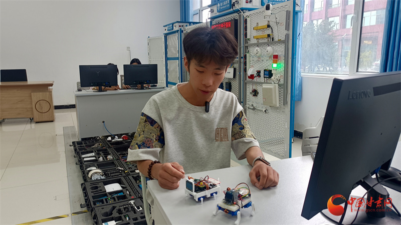 培黎職業(yè)學(xué)院信息技術(shù)學(xué)院學(xué)生唐俊杰和他的創(chuàng)新團(tuán)隊最近組裝了兩只機(jī)器狗,通過語音遙控可以實(shí)現(xiàn)指令輸出,達(dá)到陪伴、互動的目的。唐俊杰說,“手腦并用、創(chuàng)造分析”鼓勵他們要理論聯(lián)系實(shí)際,以動手能力讓圖紙變成現(xiàn)實(shí),機(jī)器狗是他們的在實(shí)踐課程中不斷創(chuàng)新探索而來。