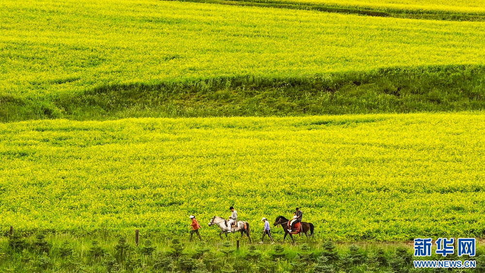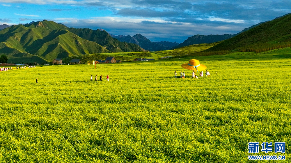 連日來,位于祁連山下的甘肅省張掖市民樂縣扁都口景區(qū)萬畝油菜進入盛花期。金黃的油菜花海與草原綠野相連,空氣中彌漫的淡淡花香,醞釀山川,醉了游人。新華網(wǎng)發(fā)(王將 攝)