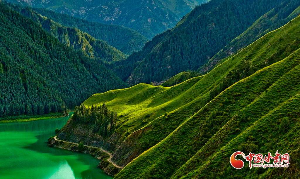 8月8日一場(chǎng)小雨過(guò)后,祁連山國(guó)家公園甘肅張掖市民樂縣海潮壩段,群山環(huán)抱。綠意蔥蔥的原始森林中蒼松翠柏聳立,黑河水與碧綠的草原、山林相映成趣,共同勾勒出一幅國(guó)家公園的秀麗畫卷。