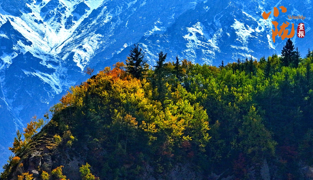 秋風(fēng)吹過,祁連山的原始森林悄然換裝。黃綠交織,紅金點染,仿佛大自然執(zhí)筆揮灑的油畫,靜謐而熱烈。尤其是在陽光的照耀下,與遠(yuǎn)處的雪山和湛藍的天空、潔白的云朵,形成鮮明的對比。