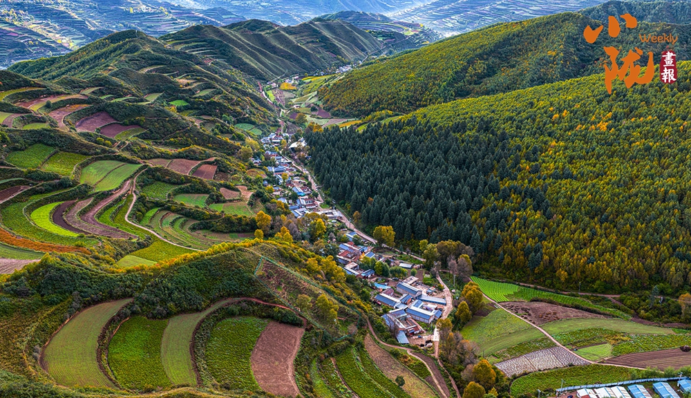 秋末初冬,多彩秋色映照著美麗的臨潭。五彩斑斕的梯田縱橫交錯(cuò)、順山而變,宛如一條條彩帶,在山間飛舞。村落點(diǎn)綴其間、古樸自然,田園生活詩(shī)意盎然。