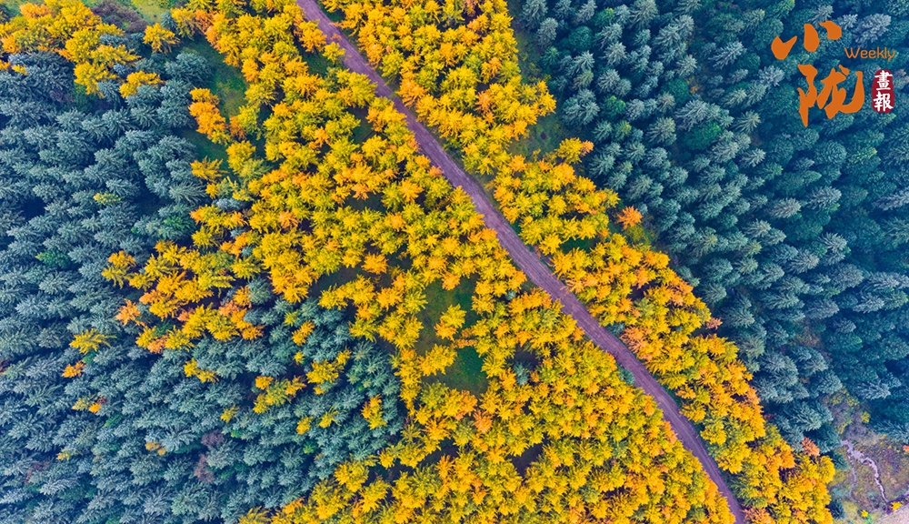 兩種顏色的樹(shù)木交錯(cuò)而立,楓葉黃得像錦緞,而松針依舊蒼翠,兩種樹(shù)木在風(fēng)中輕輕搖曳,仿佛在跳一支無(wú)聲的舞。這一片片斑斕奪目的色彩,是對(duì)這個(gè)初冬最徹底的詮釋。