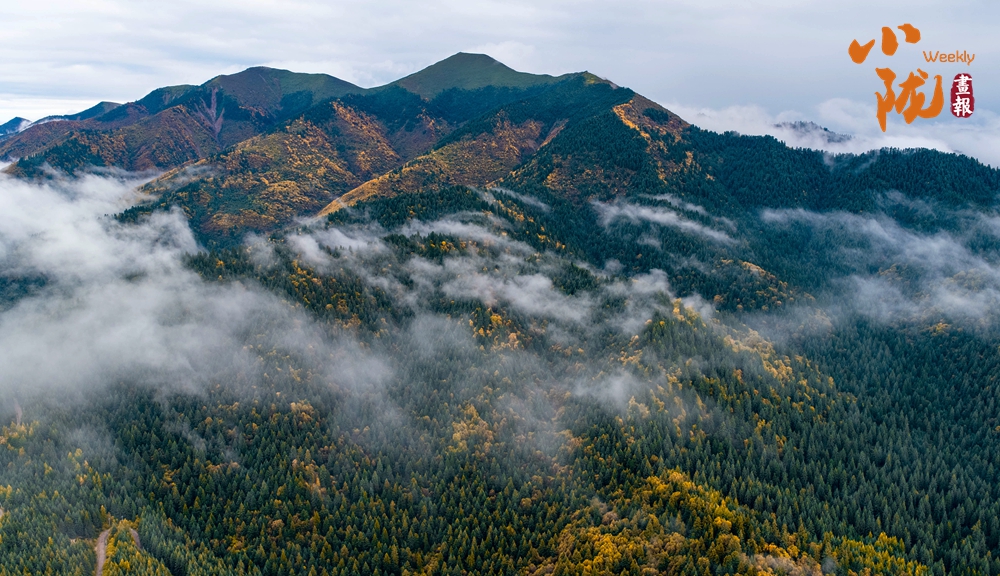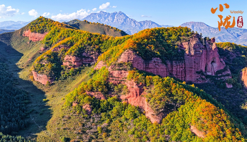 俯瞰整個(gè)冶力關(guān),遠(yuǎn)處的雪峰在陽(yáng)光照耀下泛著銀光,與近處的彩林形成鮮明對(duì)比,宛如一幅氣勢(shì)磅礴的山水畫(huà)卷。