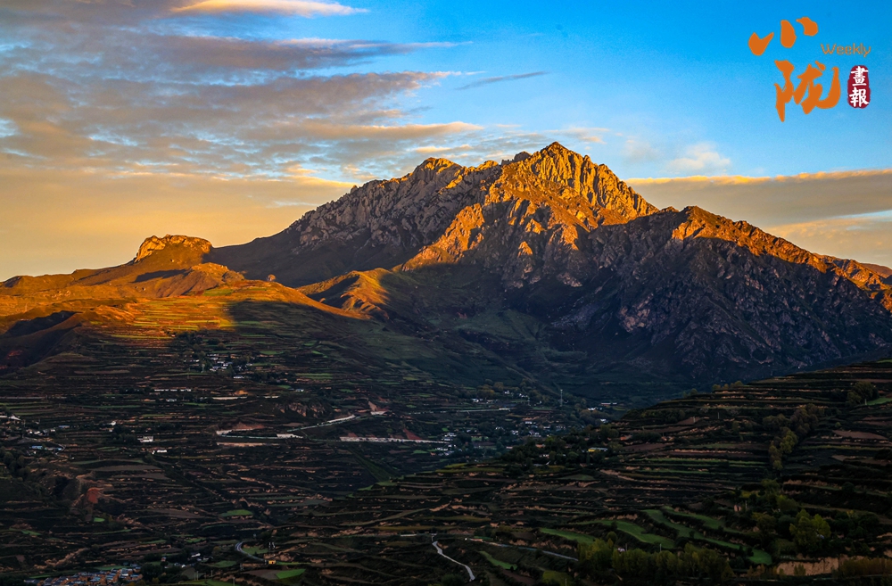 夕陽(yáng)的余暉照在山頂,這種光影交錯(cuò)的效果,為山巒增添了神秘感。山腰以下則林木蔥籠,色彩斑斕,村落依山傍水、古樸自然,像一幅被歲月輕輕展開(kāi)的水墨長(zhǎng)卷。