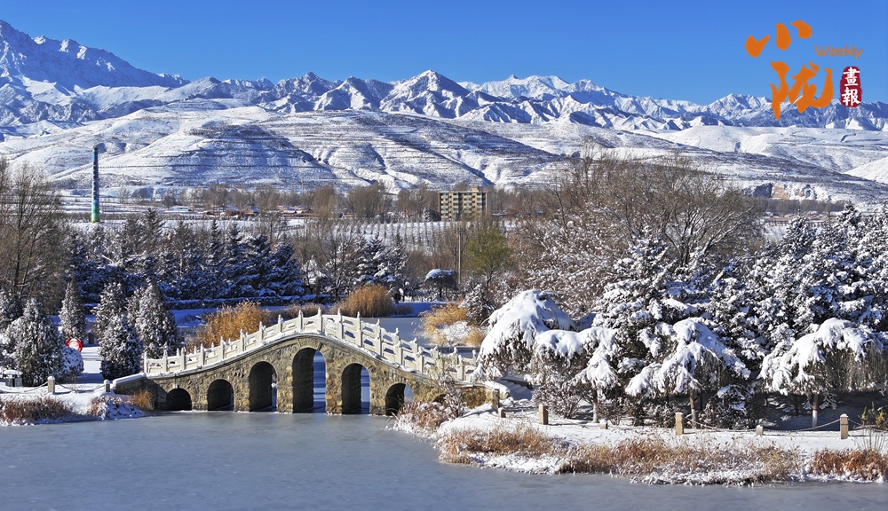 雪后初霽,銀白的民樂(lè)公園,在陽(yáng)光下熠熠生輝,安靜且神秘,與遠(yuǎn)處綿延的祁連山構(gòu)成一幅璀璨的畫卷。