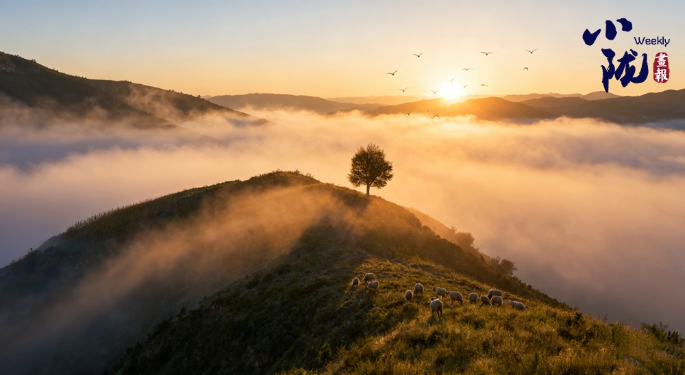 晨光初露時,薄霧浮動于溝壑之間,黃土塬的輪廓在光線中起伏,與飛翔的鳥兒、走過坡地的羊群與塬面草色,構(gòu)成一幅絢麗的畫卷。