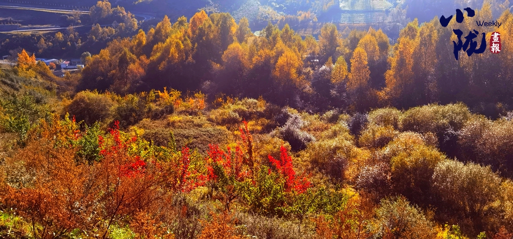 山巒溝壑間,紅、黃、橙、綠多色交織,在冬霜的滋潤下,它們盡情綻放出生命的活力,仿佛是一幅色彩繽紛的油畫。