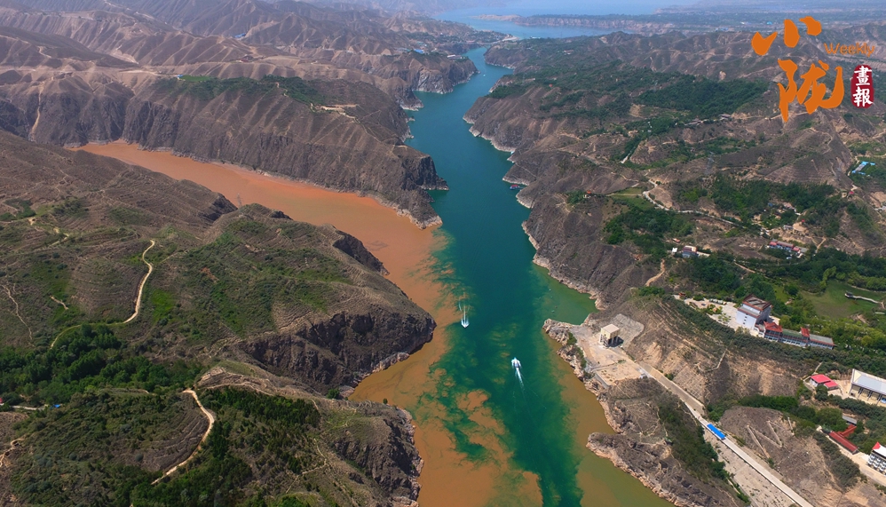 在劉家峽大壩附近,黃河、洮河以“Y”字形在龍匯山前交匯,它們輕盈碰撞,一清一濁、一藍一黃,形成了“涇渭分明”的界線,這便是著名的“黃洮交匯”奇觀。黃河從青藏高原奔流而下,上游地區(qū)植被覆蓋率高,水土侵蝕相對較弱,在這片水域,黃河平靜安寧,色藍清澈。洮河是黃河水系的重要支流,流經(jīng)碌曲、臨潭、臨洮等縣,流經(jīng)黃土高原西緣,河水攜帶大量泥沙,所以當洮河跟黃河一交匯的時候,就會出現(xiàn)“黃河清,洮河黃”的神奇景象。