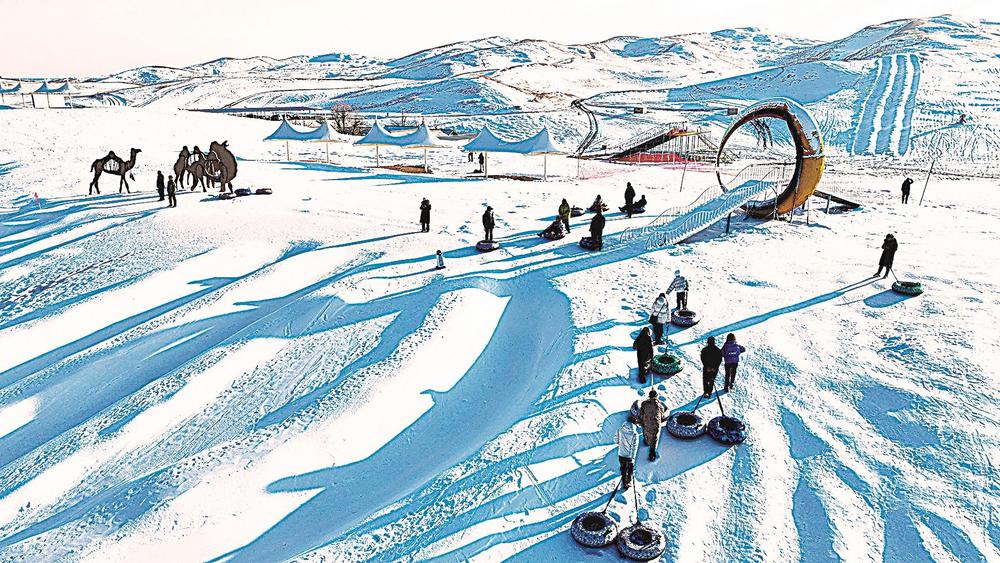 連日來(lái),眾多游客在張掖國(guó)家沙漠體育公園冰雪嘉年華體驗(yàn)冰雪樂(lè)趣,冰雪滑道、碰碰球、雪地摩托車、駱駝雪車等多樣的冰雪活動(dòng)為市民游客獻(xiàn)上冬日文旅盛宴。 李自海 攝