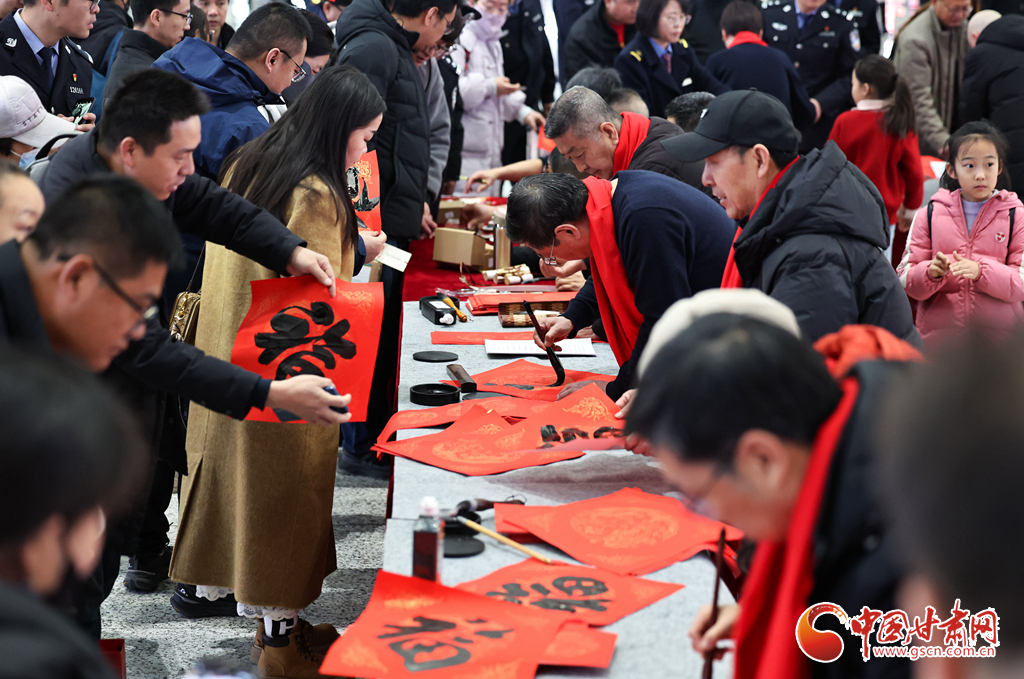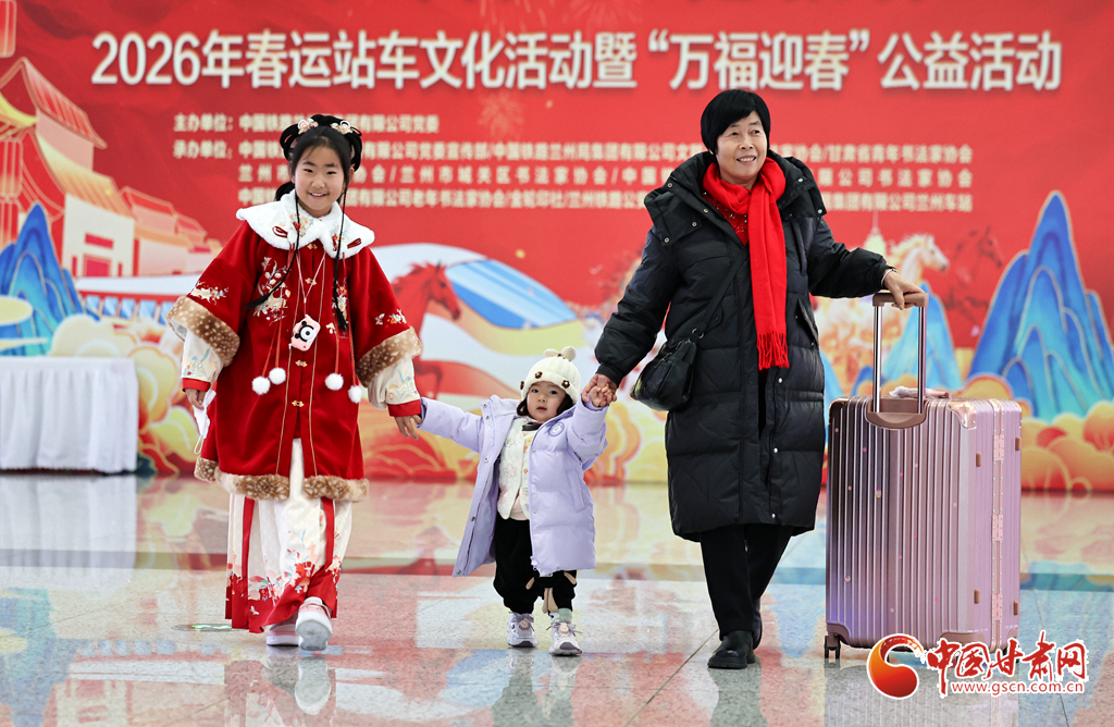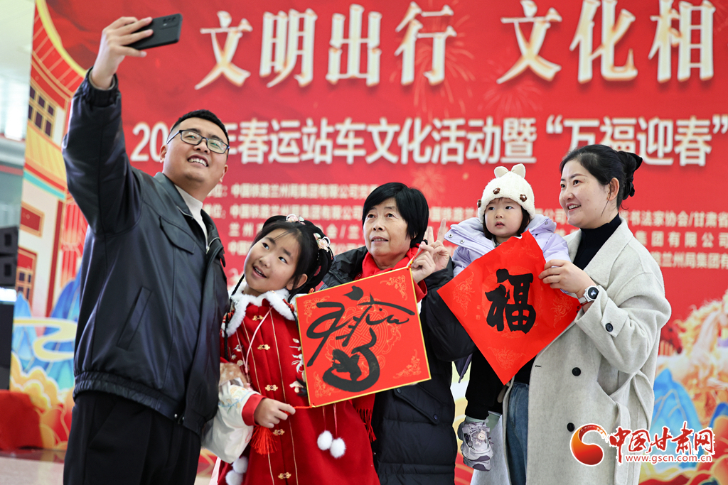 2月2日,2026年鐵路春運(yùn)大幕正式拉開。中國鐵路蘭州局集團(tuán)有限公司在蘭州西站候車廳開展“文明出行 文化相伴”特色暖心活動,邀請書法愛好者揮毫寫春聯(lián)、贈“福”字,同時(shí)奉上精彩文藝表演,為旅客的回家路增添濃濃年味與溫情。